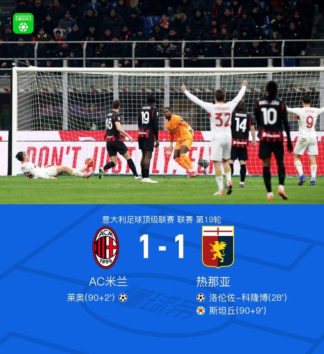 剑南春米兰11热那亚,莱奥头槌绝平,斯坦丘读秒失点