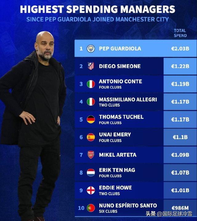 足坛教练烧钱引援总值排行榜