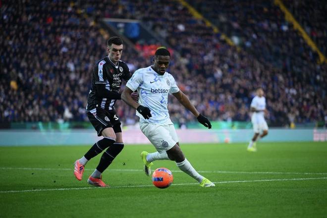 因为进球时间早,而且一球的优势也并不保险,所以国米的进攻强度并没有马上下降。第28分钟就有一次差点扩大比分的进攻出现,劳塔罗左路持球推进后横传中路,插上的迪马尔科接球后不作调整直接远射,这脚射门质量极高,但乌鸡门将奥科耶也做出了漂亮扑救,将皮球拒之门外。