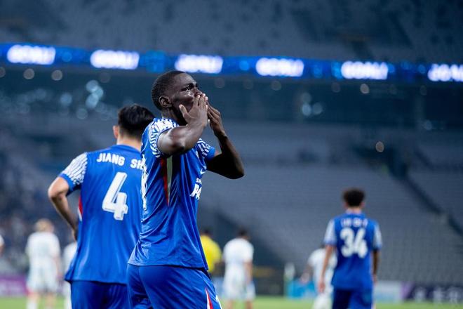 第48分钟,高天意横传经过折射制造混乱,阿苏埃禁区内凌空扫射破门,帮助申花1-0领先蔚山。