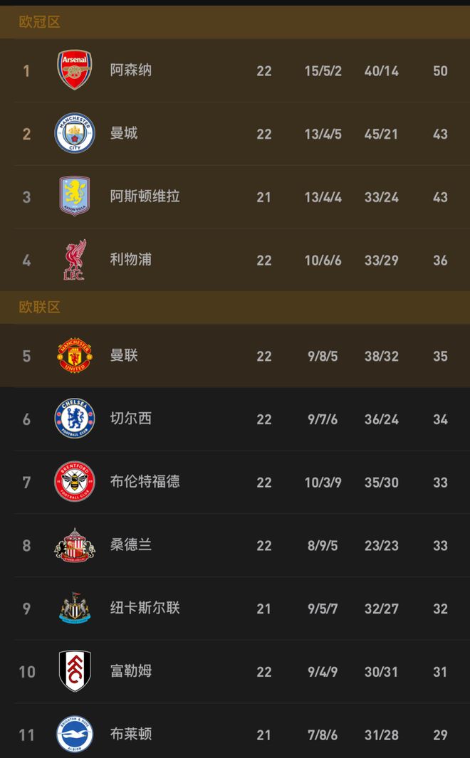 此外,曼联和切尔西本轮取胜后,分别距离利物浦只有1分和2分,英超第4名的争夺,也愈发激烈。