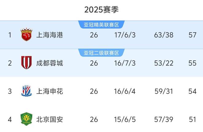 北京时间9月26日,中超联赛第26轮首个比赛日4场比赛顺利进行。最新积分榜方面,前4球队积分均突破50分,成都蓉城遭逼平后被上海海港反超,申花则仍旧落后榜首3分,梅州客家则继续垫底。