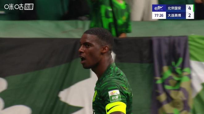 北京国安同样主场迎战大连英博。上半场直到第29分钟,塞尔吉尼奥助攻法比奥挑射破门,国安1-0打破僵局。随后第36分钟,塞尔吉尼奥禁区低射远角得手,国安半场2-0领先。下半场易边再战,张稀哲精妙做球助攻法比奥上演梅开二度,国安3-0领先。但短短的一分钟时间里,先是马莱莱助攻朱鹏宇抢点破门,随后佩尼亚兜射入网,大连英博将比分扳为2-3。第60分钟,张稀哲补射空门得手,VAR介入认定犯规在先进球被吹。第78分钟,法比奥低射远角完成帽子戏法,最终国安4-2击败大连英博,终结双线4轮不胜。